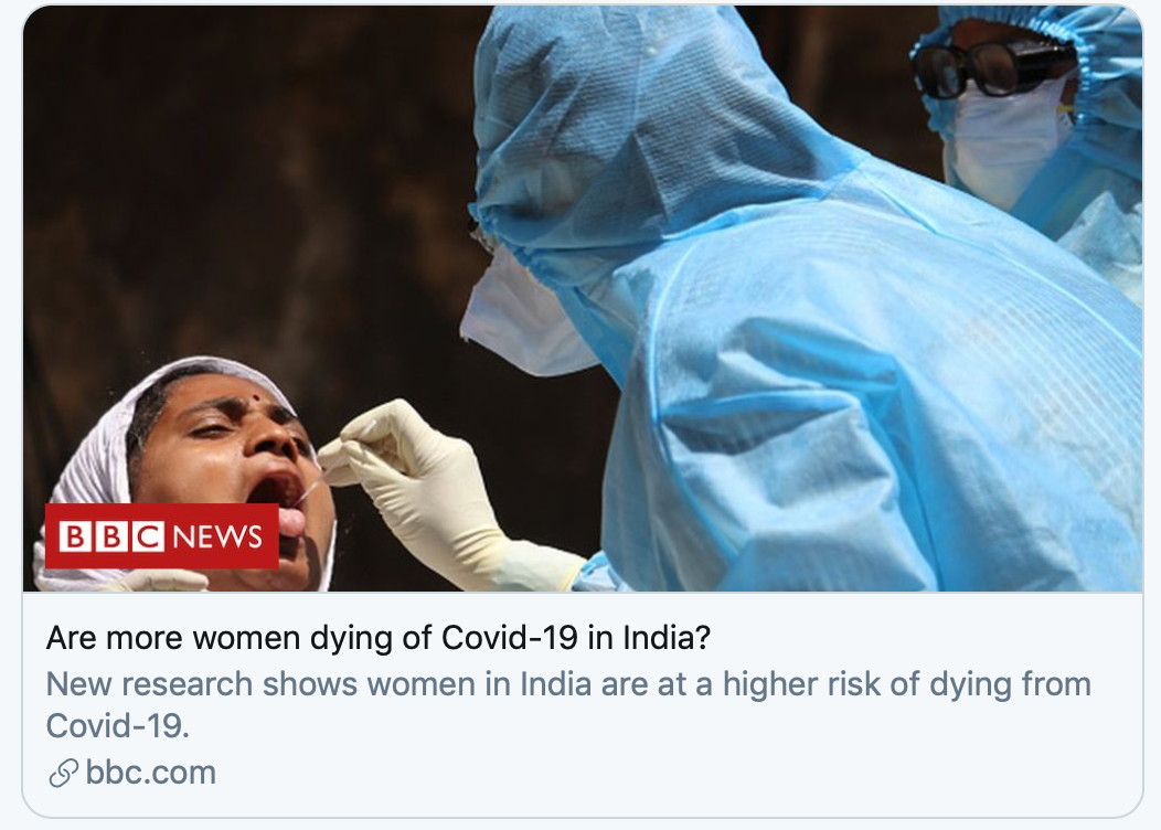 据BBC报道,印度和美国研究人员联合展开的研究结果显示,在印度,虽然男性感染率要高于女性,但女性的死亡率要高于男性。