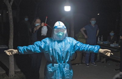 6月22日上午7时许,北京安贞医院老年心内科的30名医务人员集结完毕,乘大巴从城北赶赴城南,支援北京高风险地区之一——大兴区西红门镇,进行核酸检测采样工作。