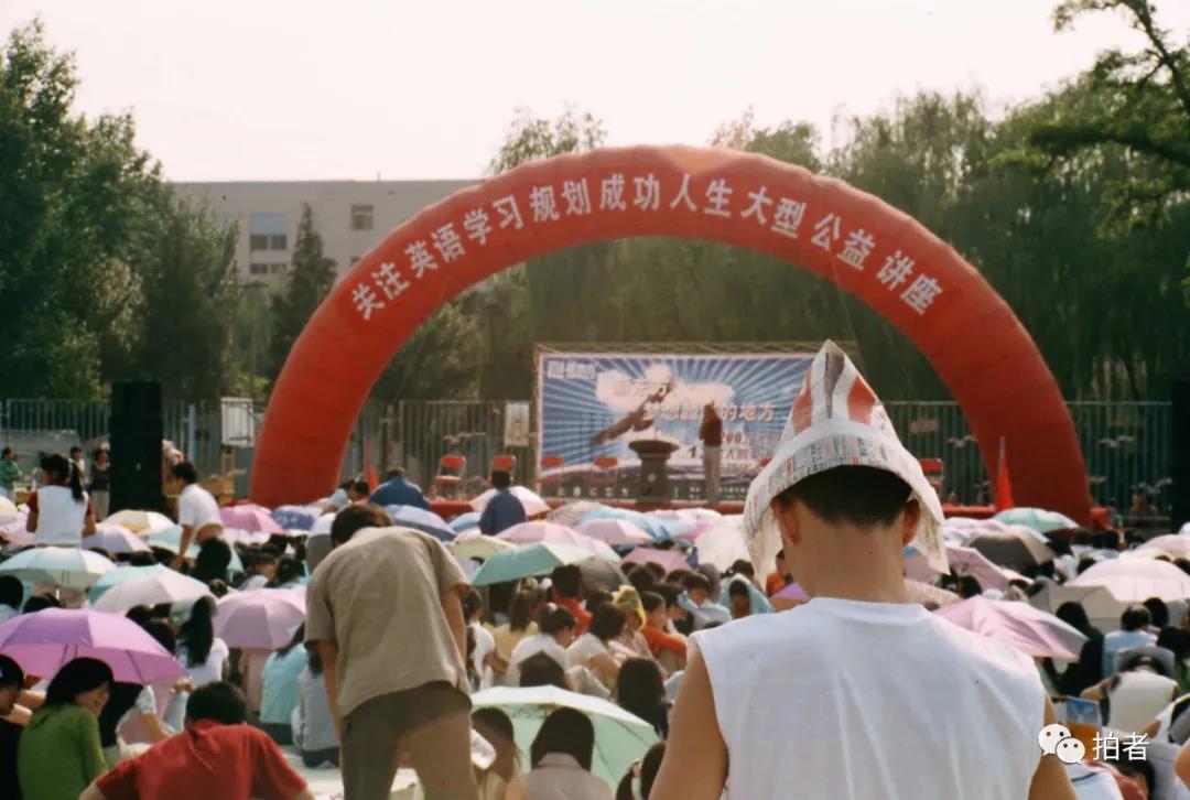 △ 2004年,“新东方”在太原开设学校。那天特别热,俞敏洪在台上演讲的时候,上身是正装,脚上穿了一双运动鞋。