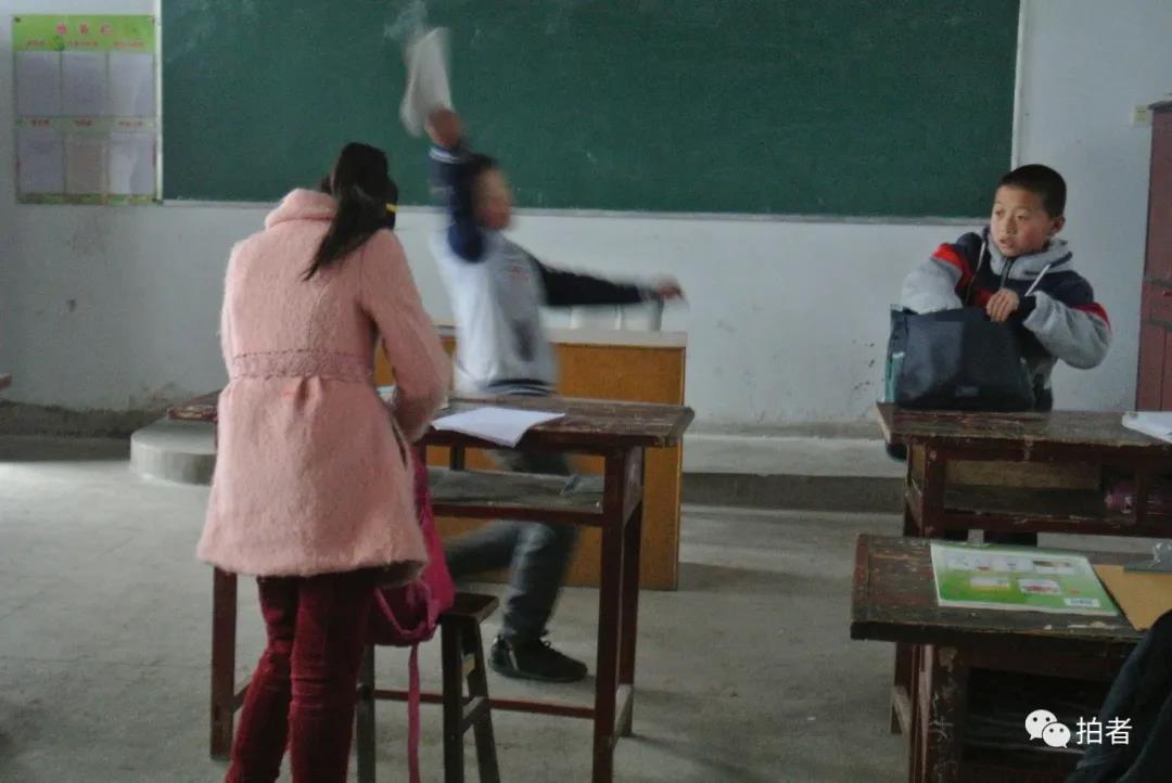 △ 2016年3月,同班的两个男生正忘情地跳“江南Style”,这舞蹈是他俩看电视自学的。拍摄者:梁蕴涵,时年8岁。