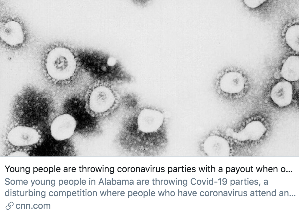 年轻人正在举行“新冠派对”,第一个确诊的人可获得奖励。/ CNN报道截图