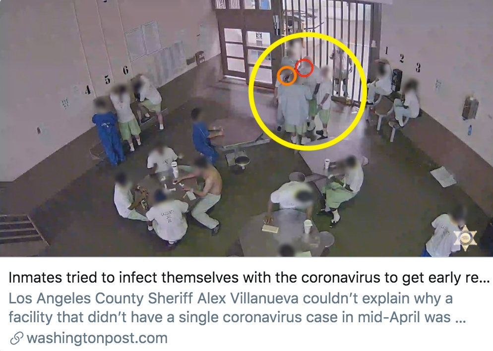 囚犯为提前出狱而试图感染新冠病毒。/ 《华盛顿邮报》报道截图