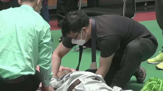 ▲擂台赛30秒太极大师被打倒3次休克倒地 。