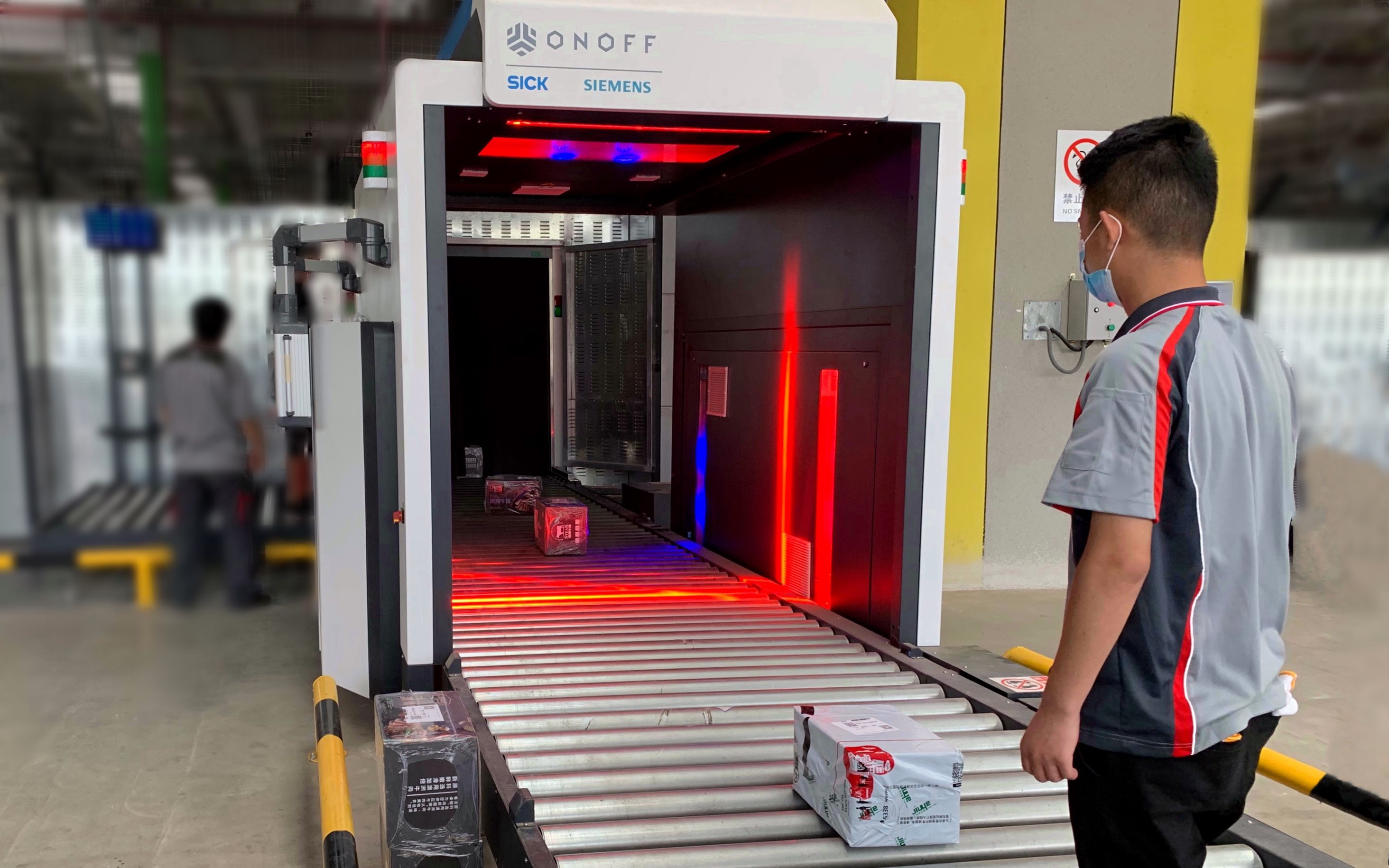 在集中判图室的安检员一旦发现货物有问题,将立刻触发报警系统,正在过检的货物将自动退出安检通道。同时,在现场负责开包检查的安检员会同步收到提示信息,并立刻对可疑货物开包检查。