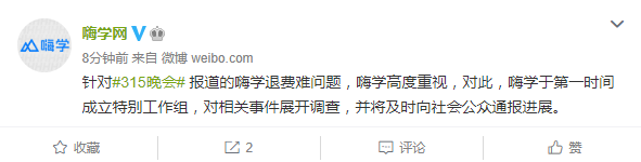 嗨学网回应315晚会曝光退费难:对相关事件展开调查