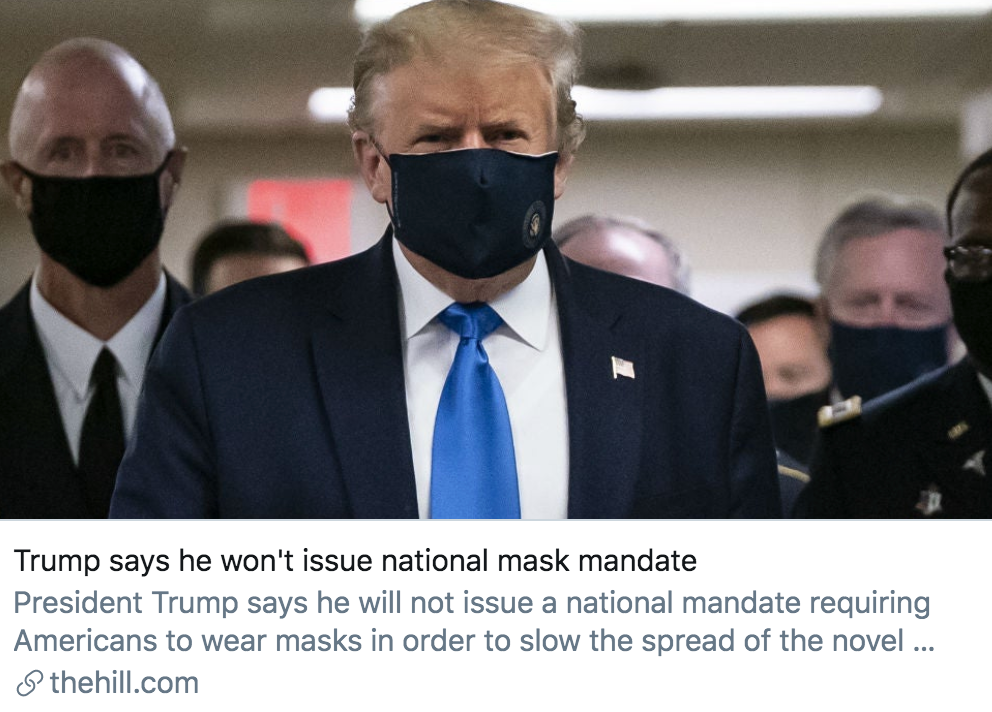 特朗普声称他不会发布“口罩令”。《国会山报》报道截图