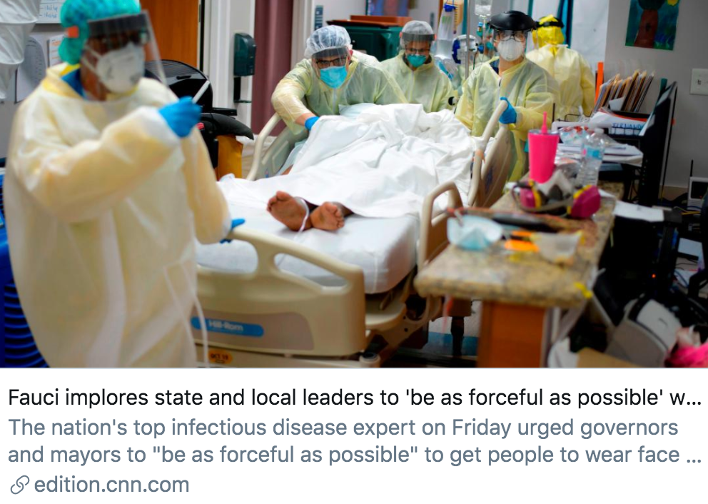 福奇敦促州长和市长“尽最大可能强制”民众佩戴口罩。CNN报道截图