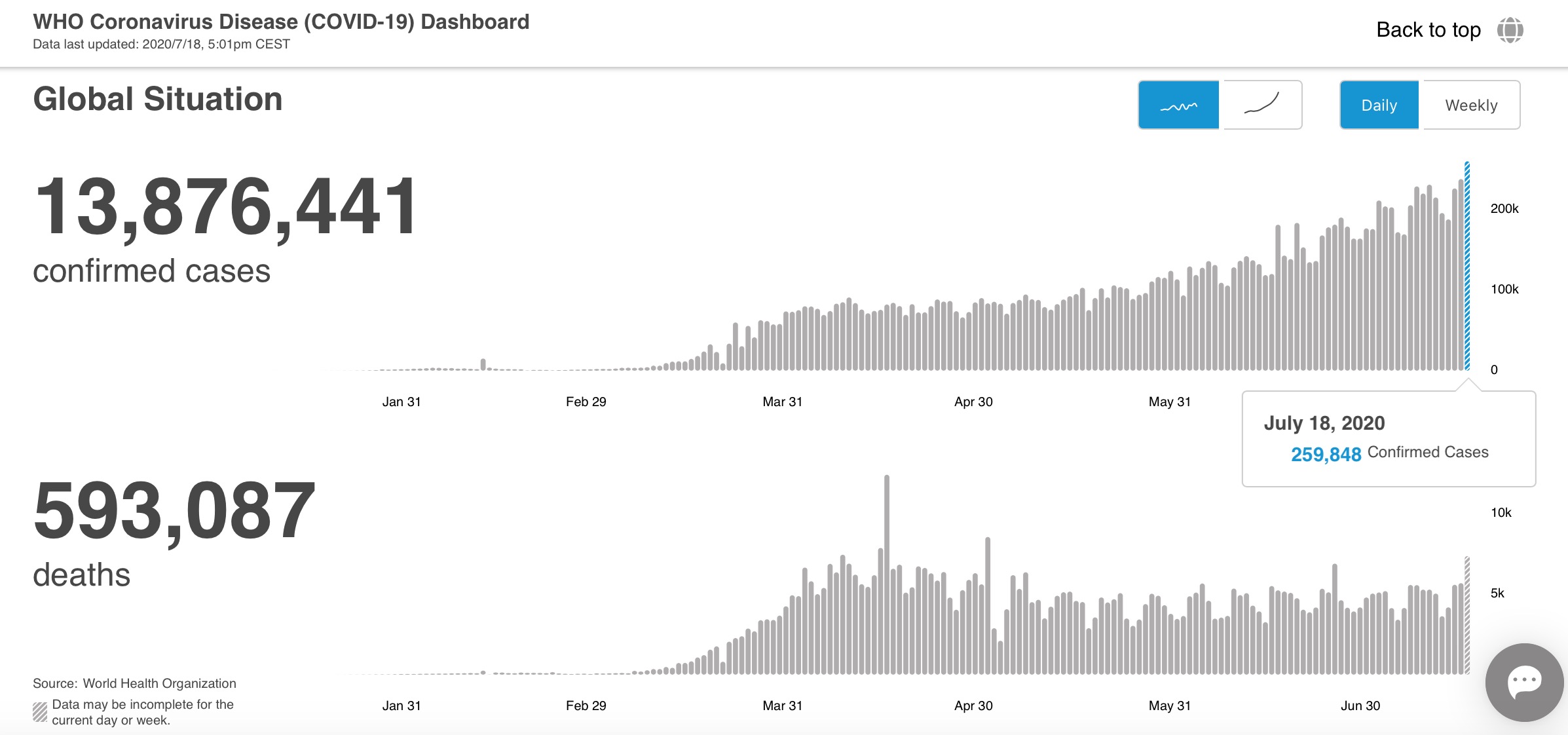 据世卫组织统计,截至欧洲中部时间7月18日17时,全球累计确诊病例超过1387万例,累计死亡病例直逼60万例。