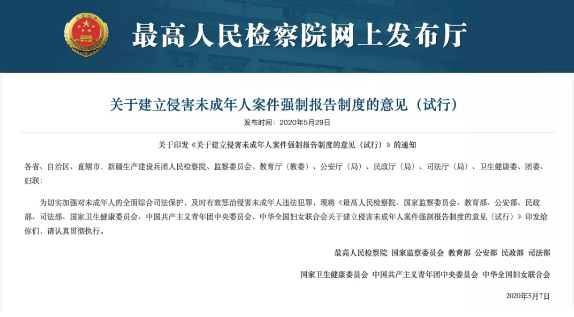 其实,今年5月7日,九部门联合印发《关于建立侵害未成年人案件强制报告制度的意见》,重庆“强制报告APP”上线试运行,也是对这一意见的落地。