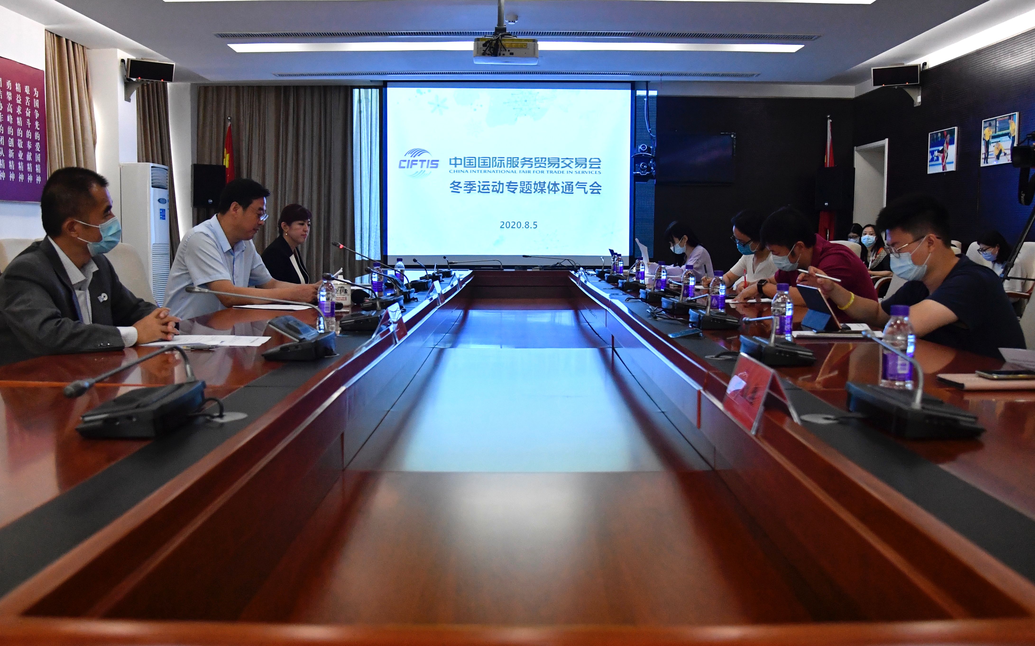 今天上午,2020年服贸会冬季运动专题媒体通气会召开。摄影/新京报记者 吴宁