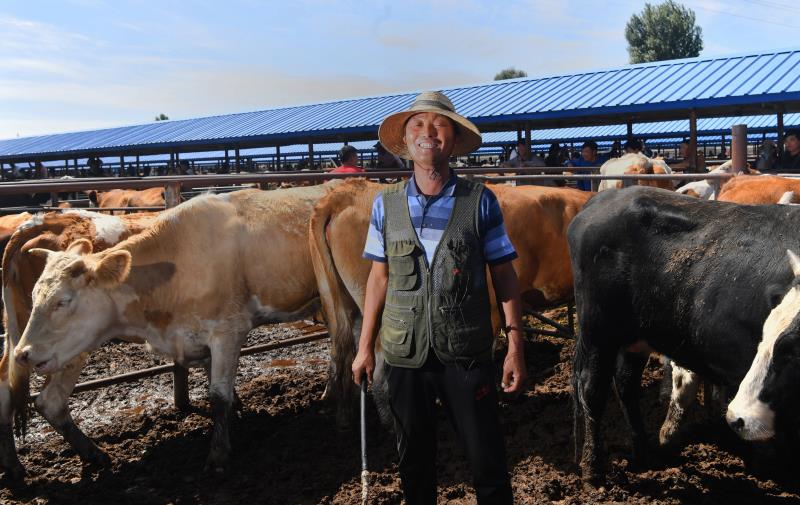 交易市场相关负责人告诉记者,在扶贫政策的支持下,尤其是借助京蒙帮扶的东风,市场加大了对贫困户的帮扶力度,包括与周边贫困农牧民签订合作协议,培养养殖经纪人,通过小额信用贷款支持、免费提供暂养场所、交易管理、资产收益等,让牧民们通过养殖黄牛脱贫摘帽。