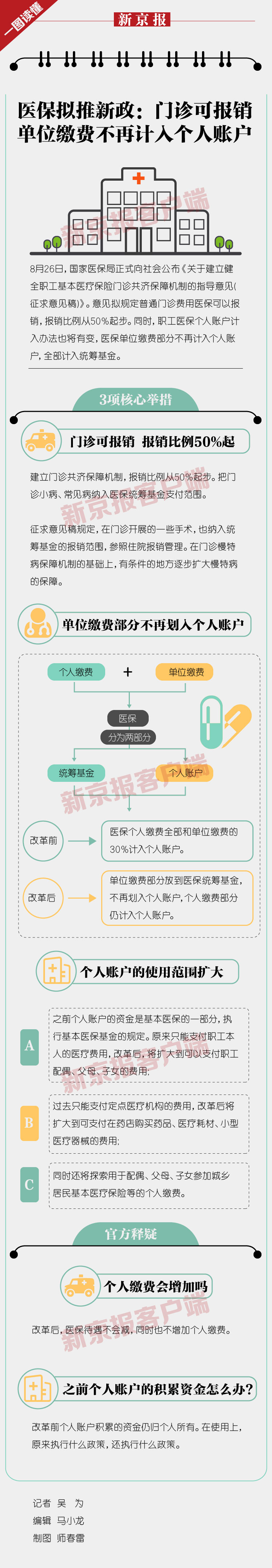 一图读懂|医保拟推新政:门诊可报销 单位缴费不再计入个人账户