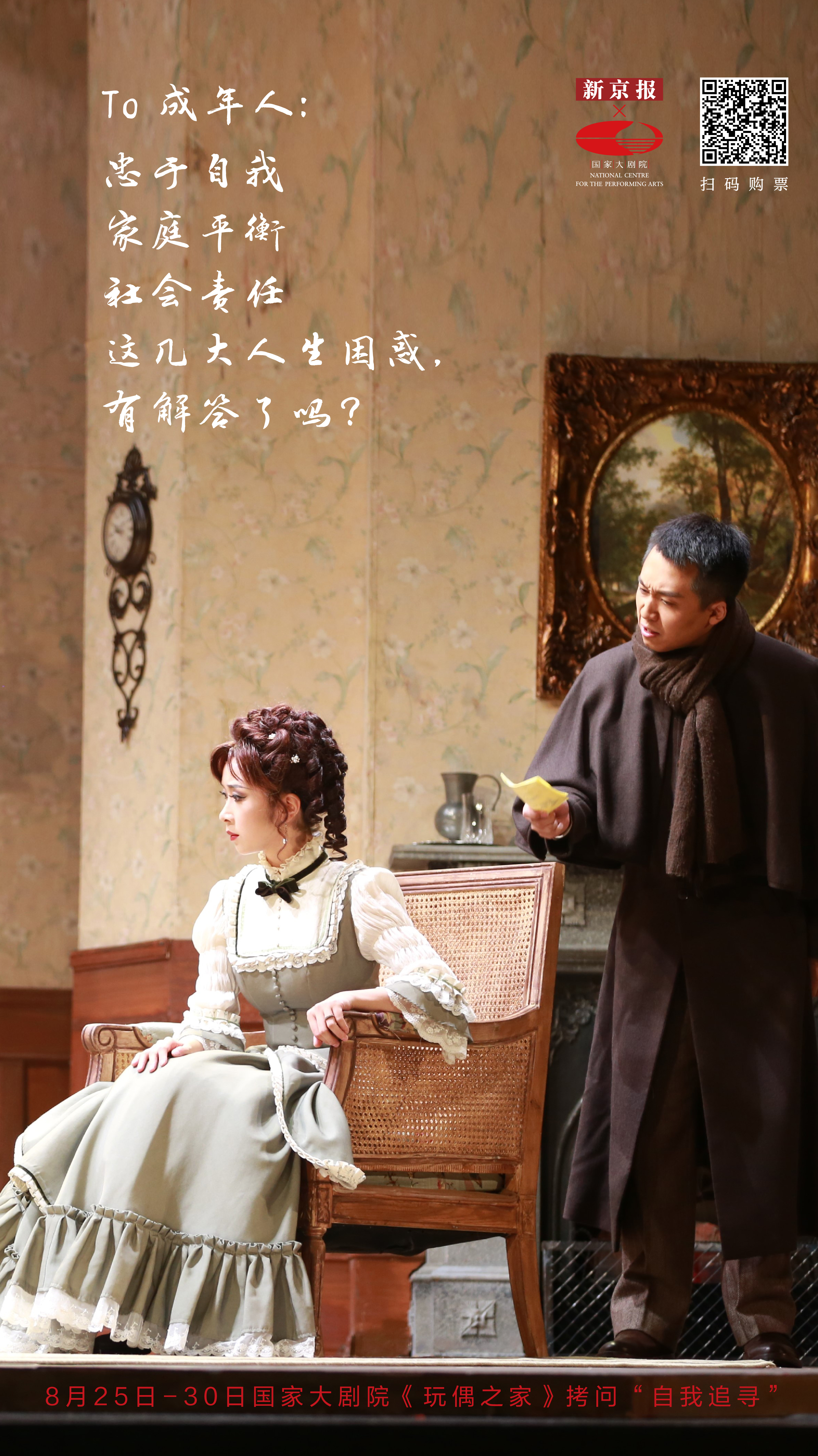 这几大命题无论在哪个时代都有着它的生命力,比如在易卜生剧作《玩偶之家》中,就有一场“自我追寻”。这部经典剧作被搬上舞台,即日起至8月30日,将在国家大剧院上演。