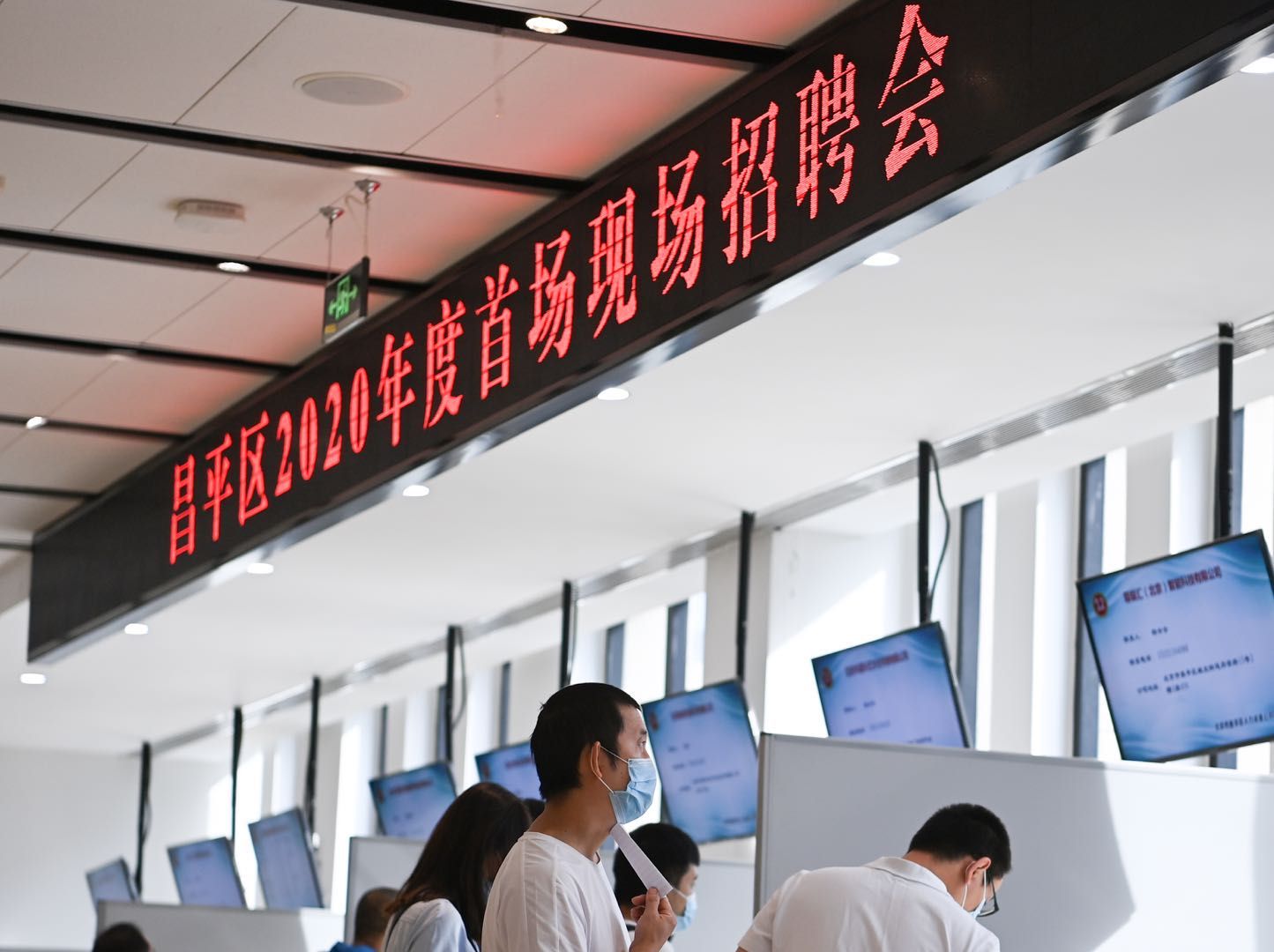 新京报快讯(记者 吴为)9月4日,昌平区2020年度首场现场招聘会在昌平区人力资源公共服务中心举行。这也是新冠疫情发生并得到有效控制以来,北京市恢复举行的第一场线下招聘会。