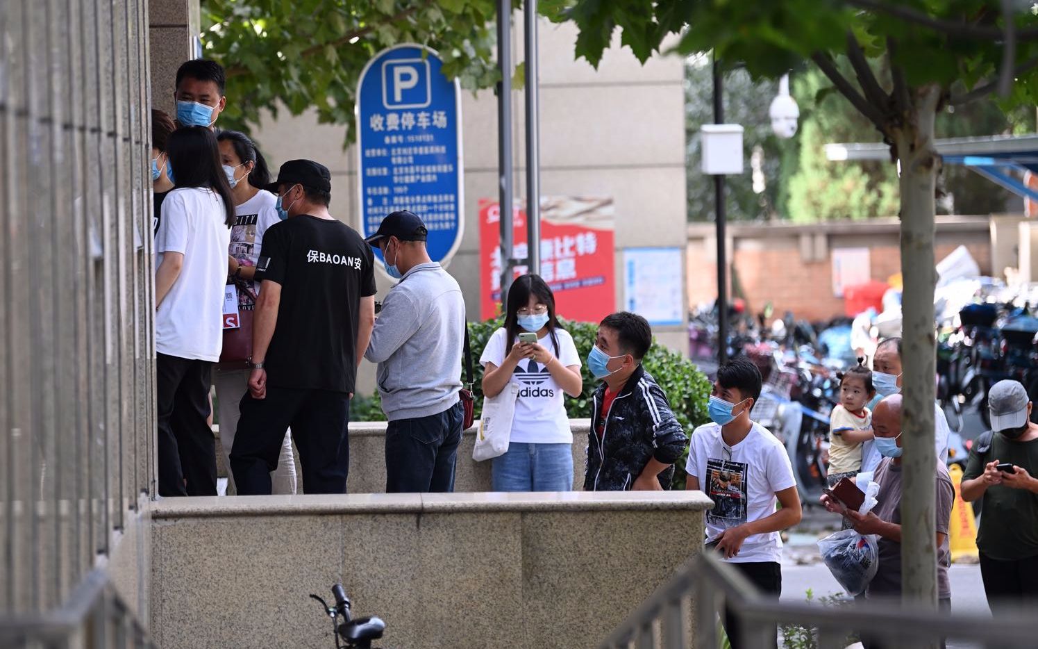 昌平区人力资源公共服务中心大楼外,不少求职者排队等待入场。摄影/新京报记者 陶冉