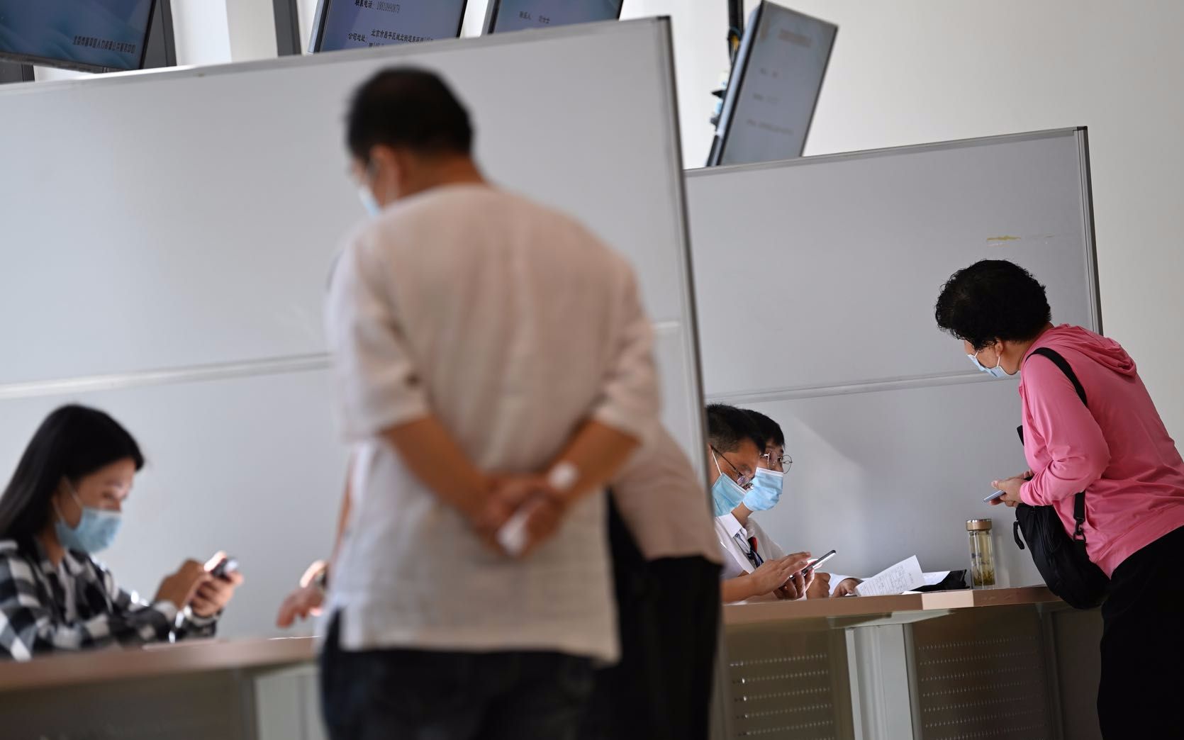 “请出示您的健康码,扫码登记入场。”在昌平区人力资源公共服务中心大楼里的入口处,早上九点不到已经有不少前来参加招聘会的求职者排队等待入场。入口处的保安指导求职者打开手机健康码页面,提前做好入场准备。