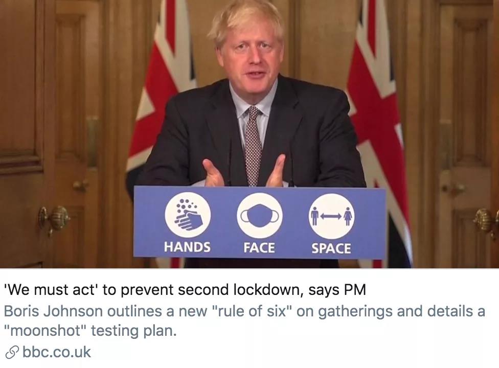 当地时间9月9日,英国首相鲍里斯·约翰逊在电视讲话中宣布,“由于近期新增确诊病例数量大幅增多,我们必须采取行动”。