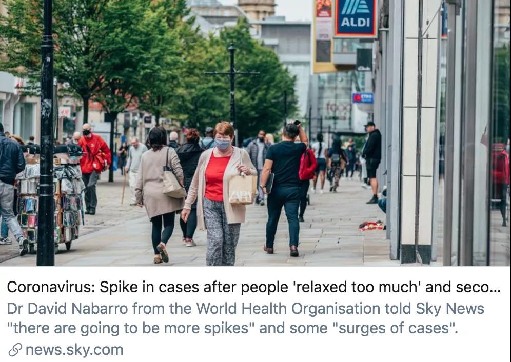 在人们“太过放松”后,英国确诊病例数量激增。天空新闻网报道截图