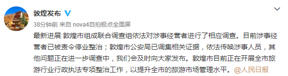 新京报快讯 据甘肃省敦煌市外宣办官方微博消息,9月14日,有网友反映,甘肃敦煌一景区现“专坑游客公厕”,厕所建在沙土上,游客开车过来后车辆被陷,工作人员再索要巨额拖车费。9月14日晚,敦煌发布市外宣办回应称,敦煌市组成联合调查组依法对涉事经营者进行了相应调查。目前涉事经营者已被责令停业整治;敦煌市公安局已调集相关证据,依法传唤涉事人员,其他问题正在进一步调查中,将及时发布。