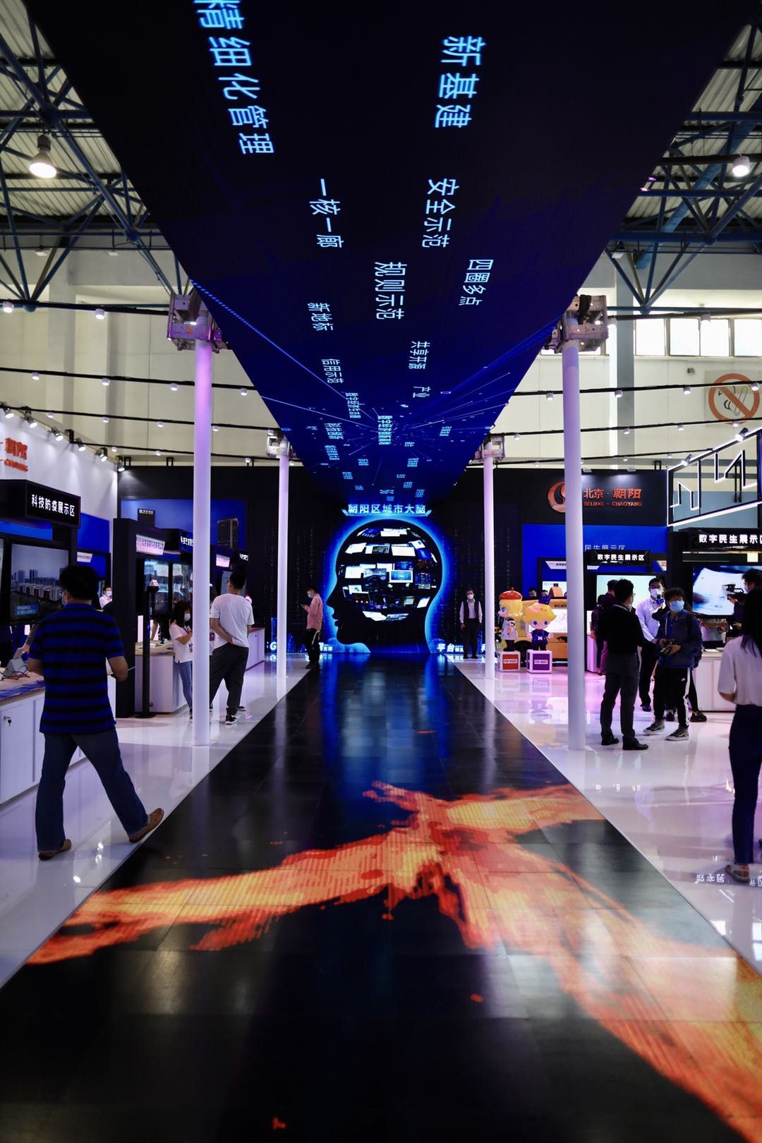 数字朝阳展区通过科技天幕展示城市大脑。摄影/新京报记者 浦峰