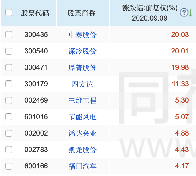 同花顺数据显示,在概念股整体大涨的9月9日,有31家公司股价上涨,还出现不少股价涨幅超过10%的股票,包括中泰股份、深冷股份、厚普股份、四方达等。