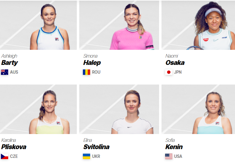 WTA最新世界排名前6位选手。网络截图