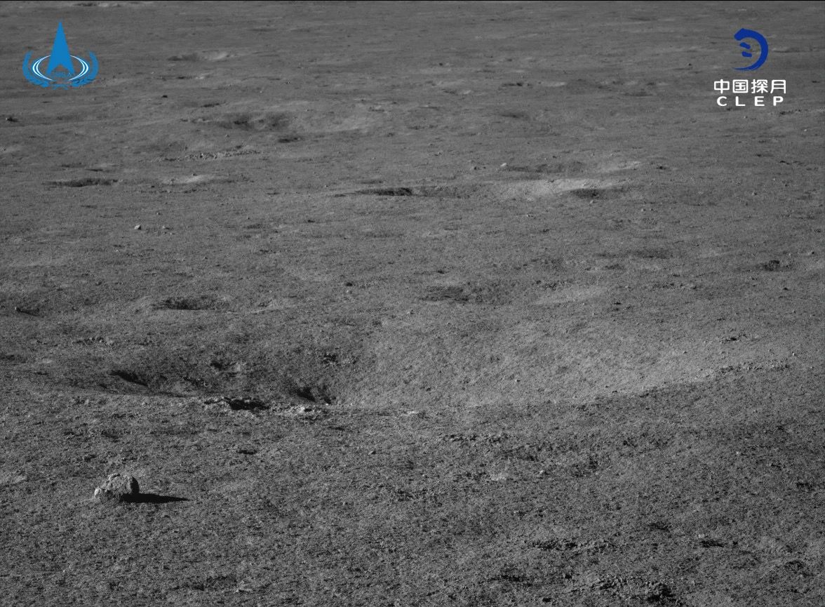 玉兔二号拍摄的嫦娥四号着陆点西北方向约1.3km的撞击坑。图/探月工程办公室