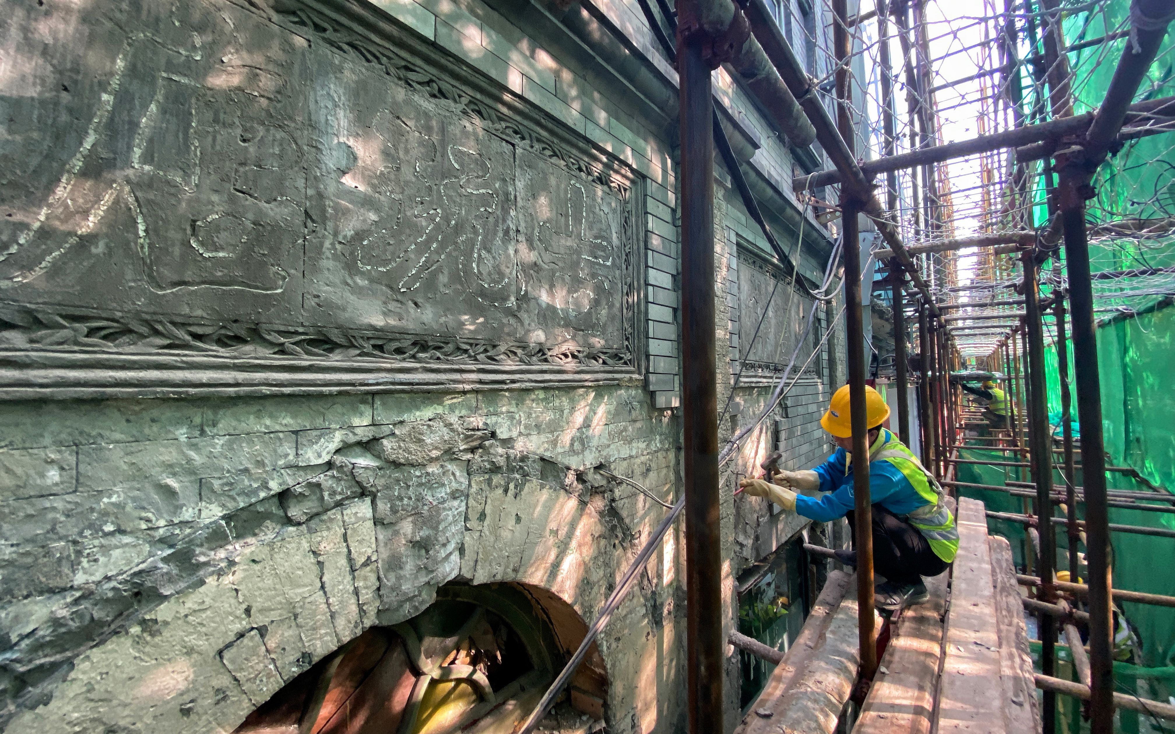 孙书同介绍,“我们在查找资料时找到了一张建筑原貌的绘画,我们参考历史资料,恢复损坏的侧墙和台阶,同时拆除外包和违规牌匾,将门窗按照原来的样子进行修缮。”