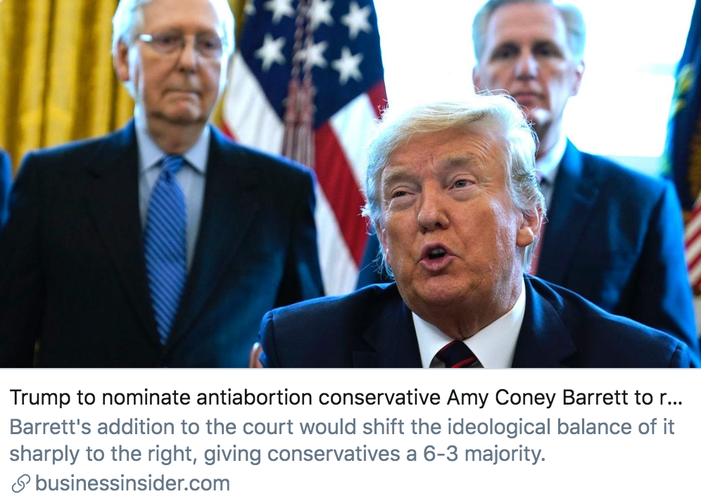 特朗普将提名保守派人士巴雷特担任最高法院大法官。商业内幕报道截图