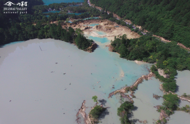 2017年地震后的火花海。图片来源/九寨沟景区官网截图。