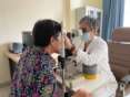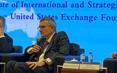 观众欣赏张大千作品《工笔描金牡丹图》。
