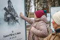 游客在红叶旁自拍。
