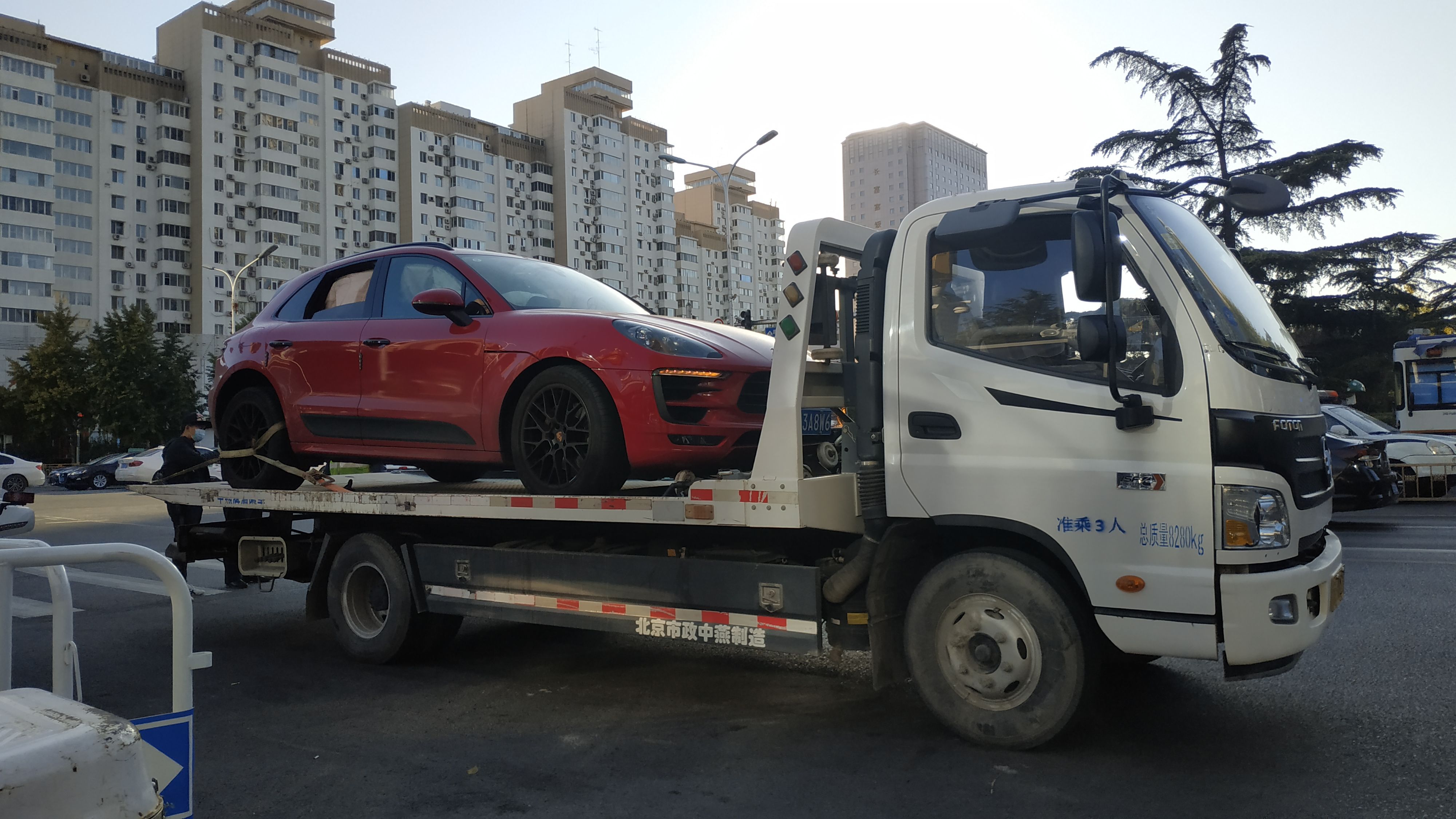 涉事车辆被拖车拖走。新京报记者 刘名洋 摄