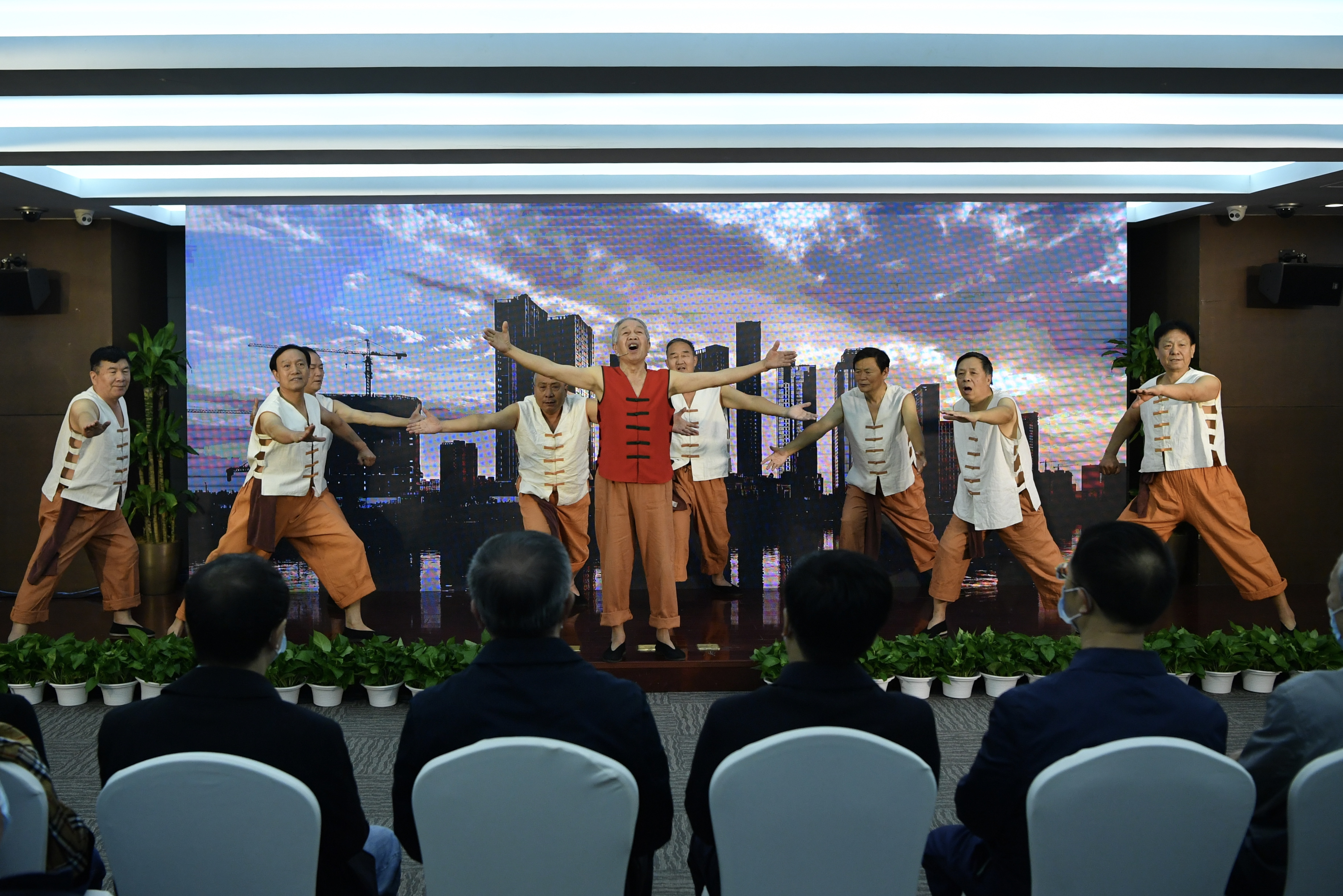 在北京城市广播副中心之声开播仪式上,通州文化馆运河号子表演团带来《运河号子》节目。摄影/新京报记者 吴江
