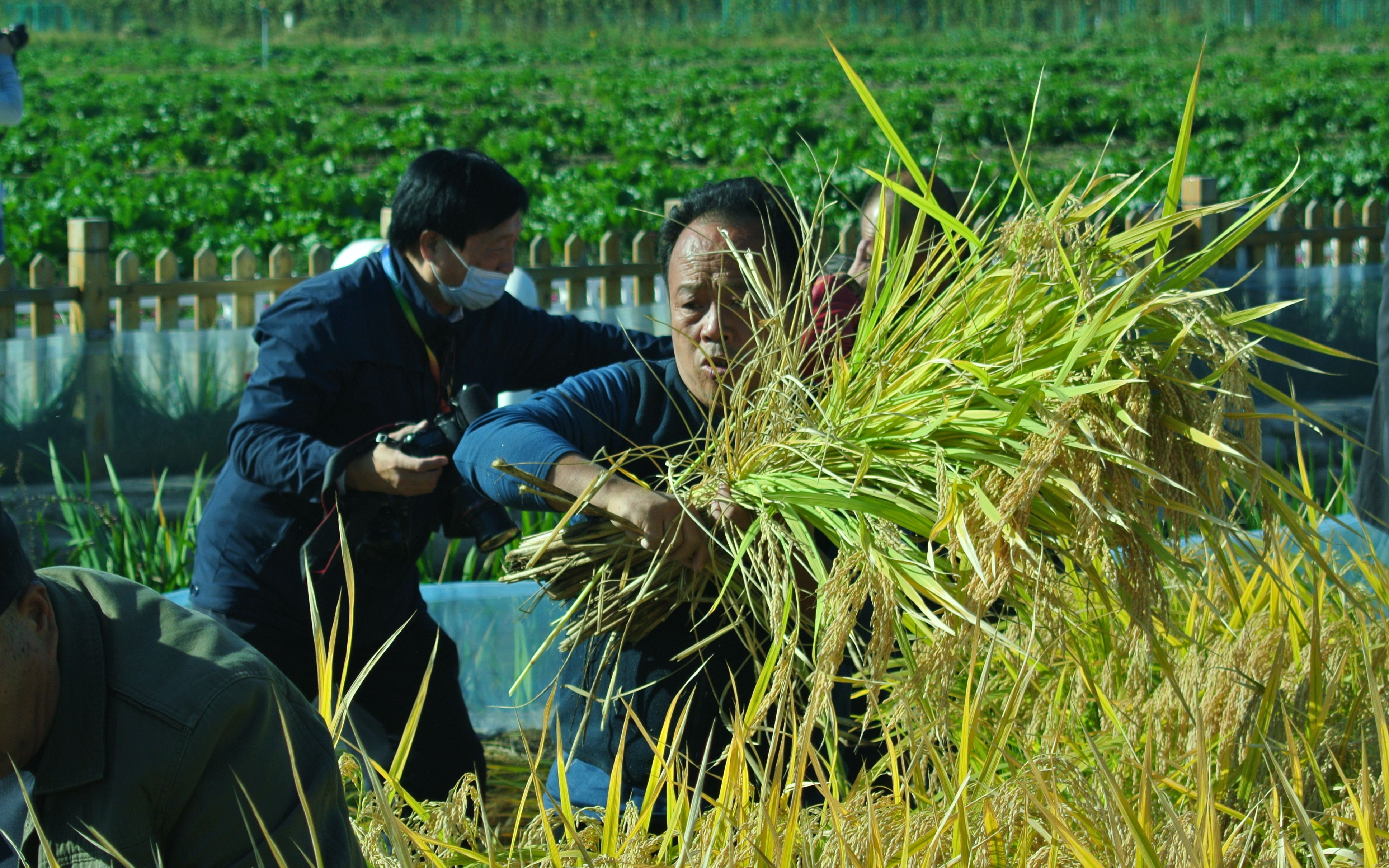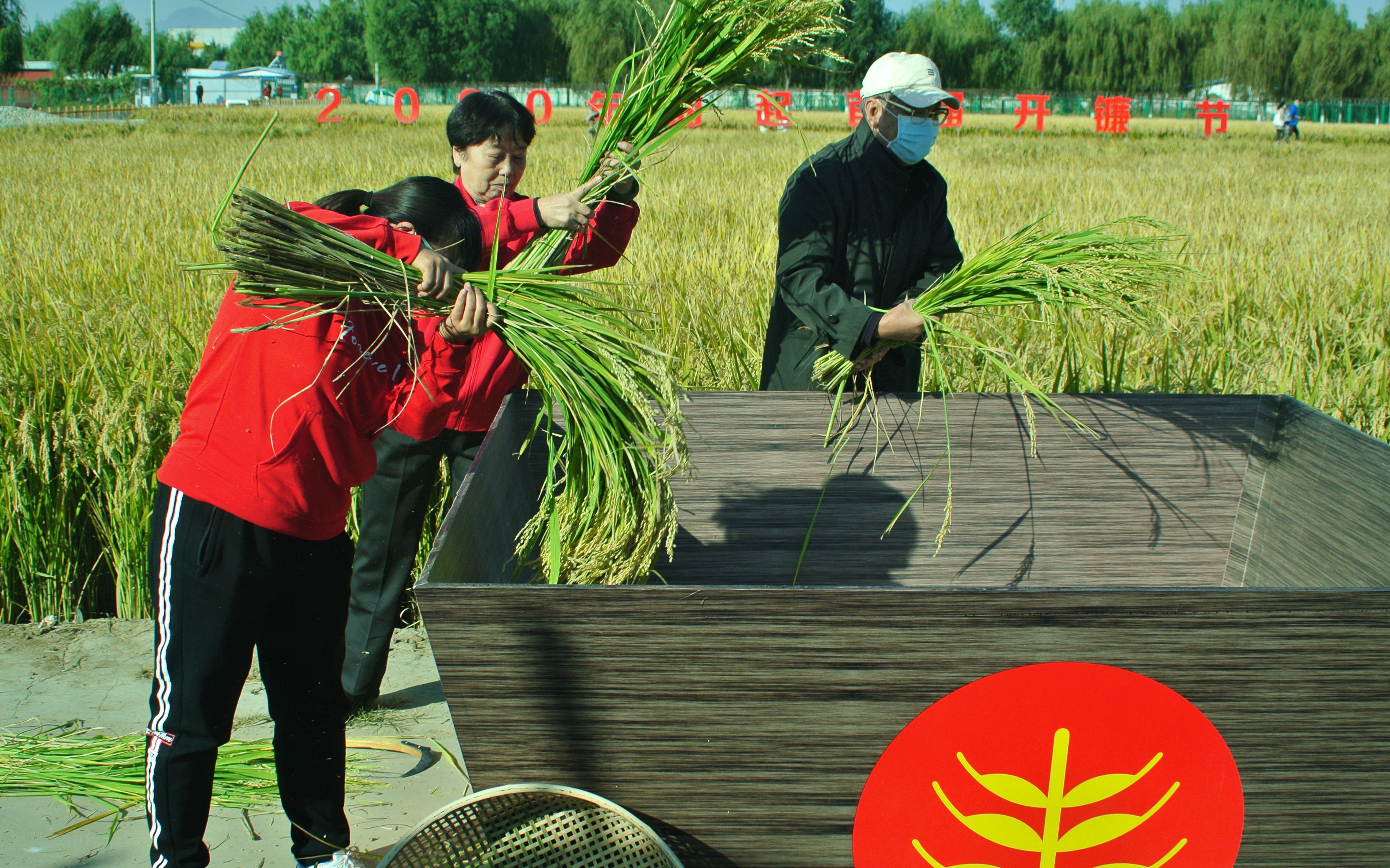 开镰节活动现场采用手工割稻谷。新京报记者 王巍 摄