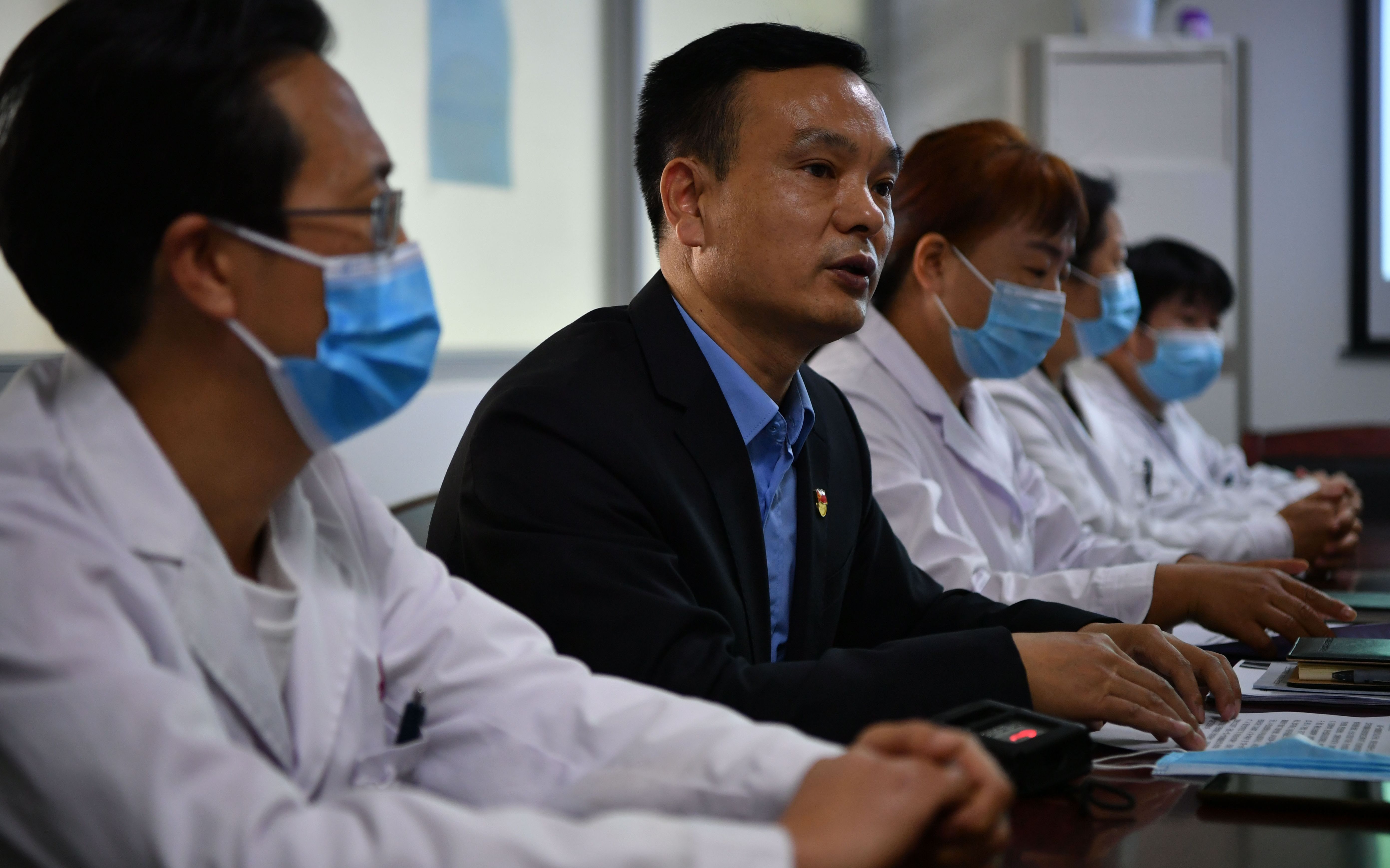 10月13日,北京市医院管理中心三级调研员、兵团第十四师医生工作队领队、昆玉市卫健委副主任罗小军和援疆医生们。新京报记者 吴江 摄