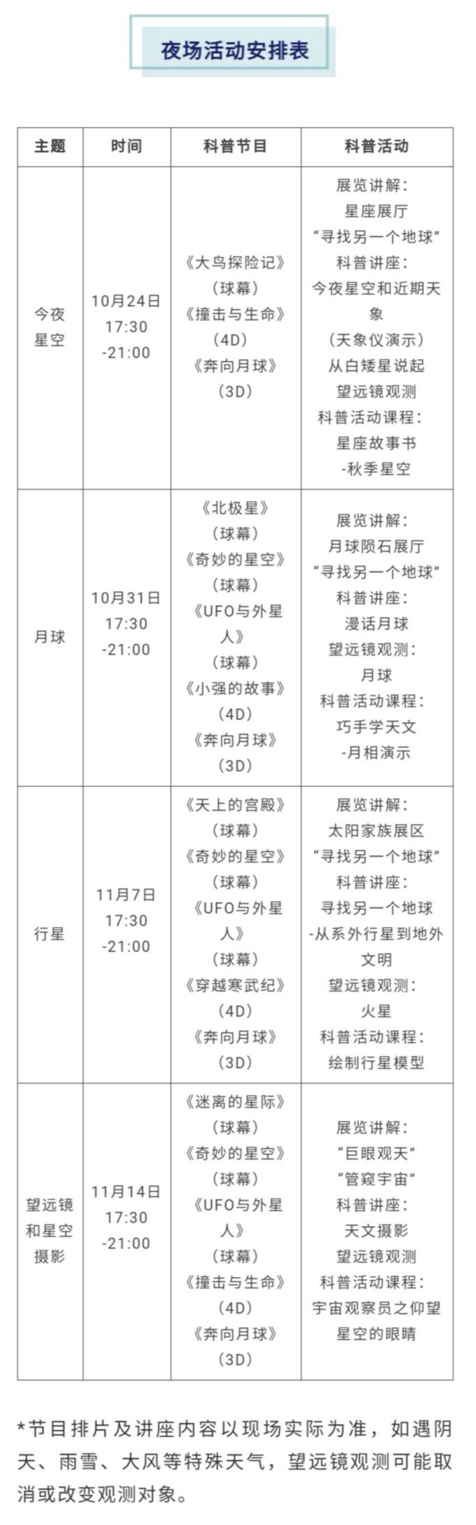 北京天文馆夜场活动安排表