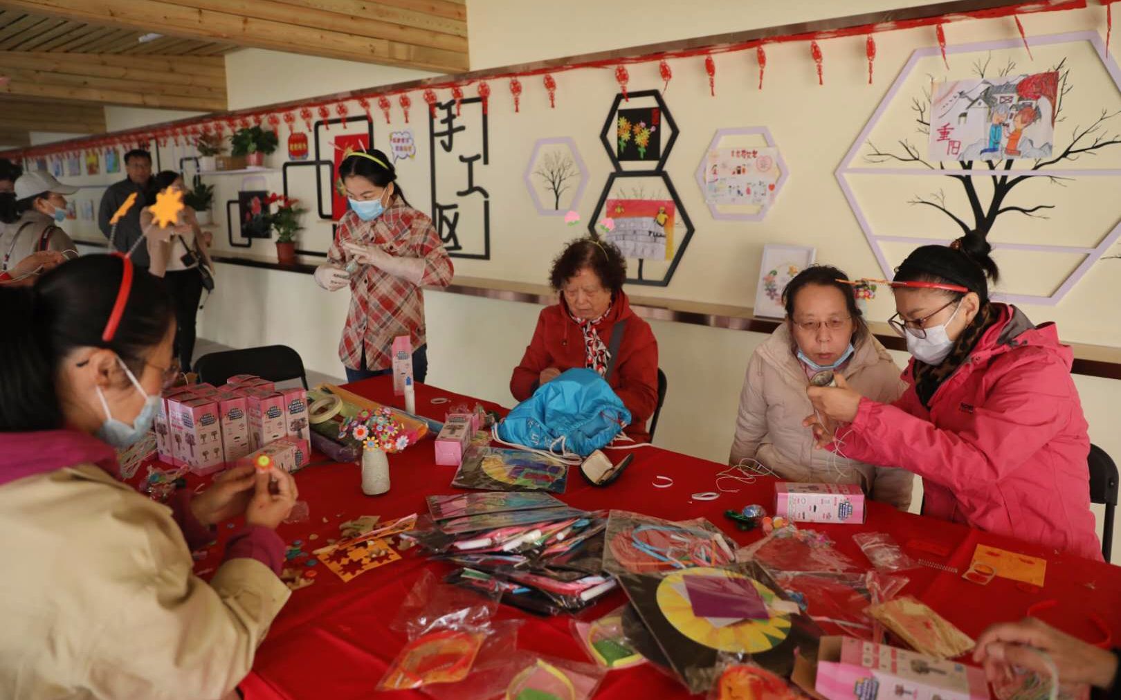 居民们在科韵长廊内进行手工制作。摄影/新京报记者 王飞
