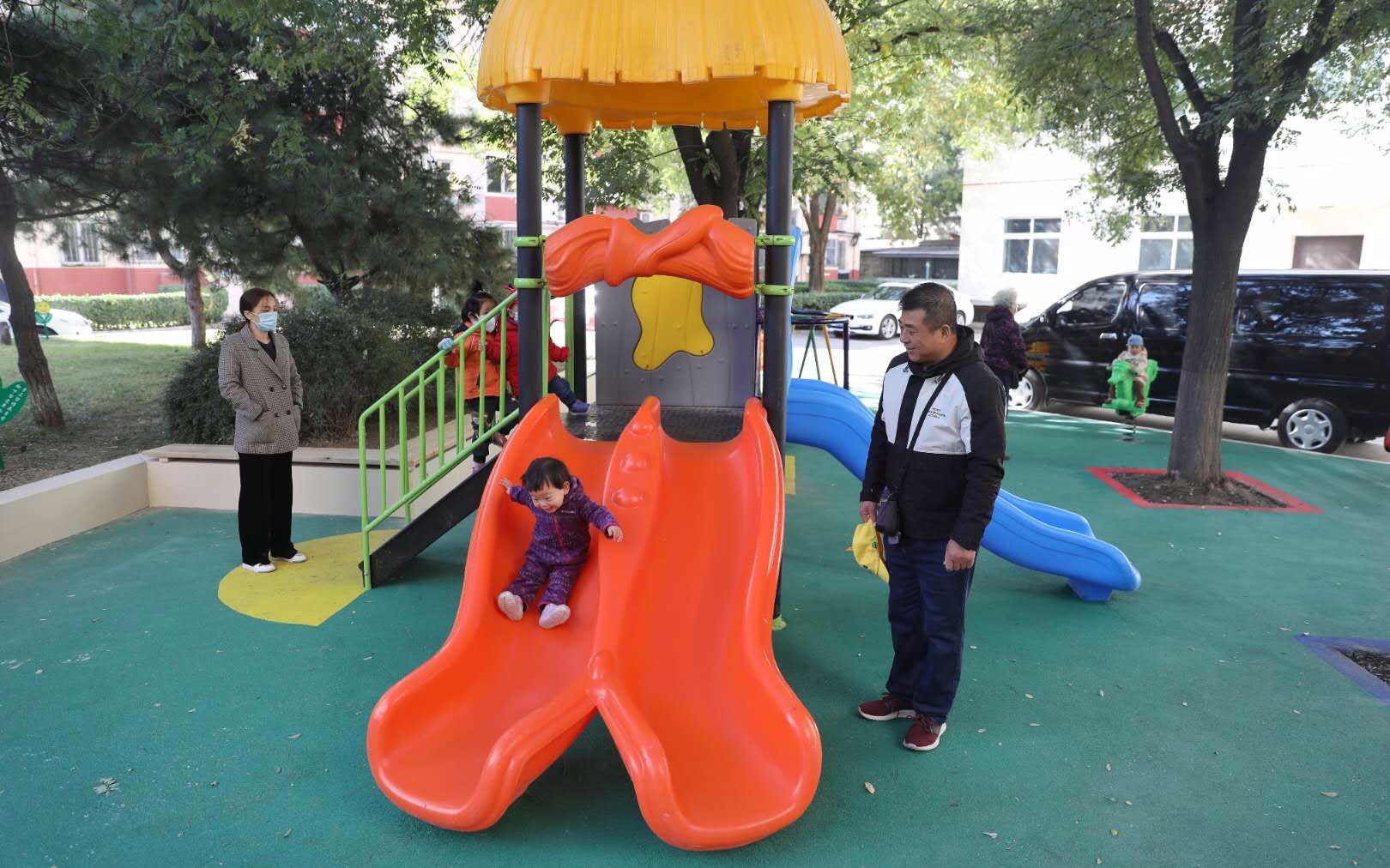 科学园南里六区中心广场改造后设立了儿童游乐区。摄影/新京报记者 王飞