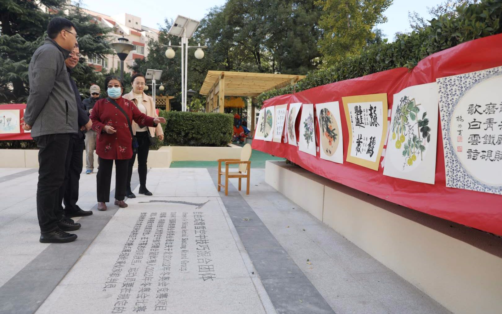 居民们在科韵长廊内进行书法交流。摄影/新京报记者 王飞