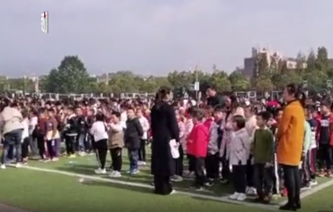 22日地震发生后,北川一小学组织师生到学校操场躲避。