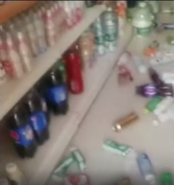 22日地震震感明显强于21日地震震感,一超市货架商品散落一地。
