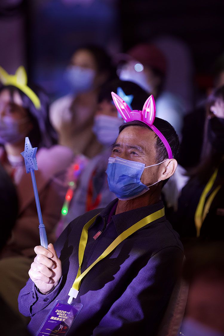 现场观众挥舞荧光棒。