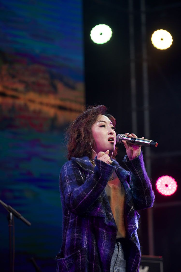 00后女歌手苏晗在台上表演歌曲。