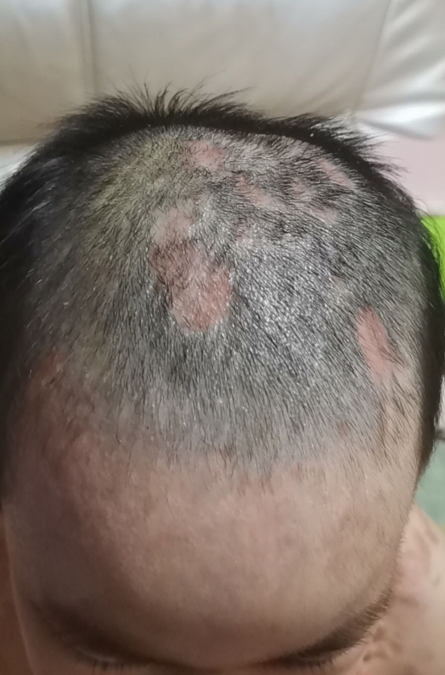 女孩头顶多处烧烫伤疤痕。受访者供图