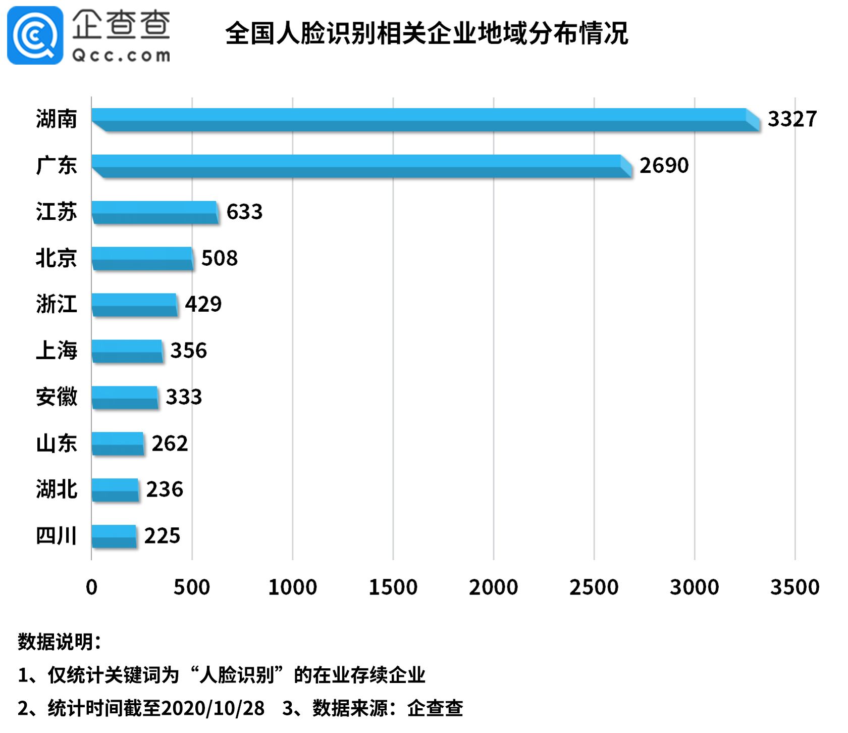 随着人脸识别技术不断成熟,市场需求将加速释放。从地域分布来看,企查查数据显示,湖南省拥有的人脸识别相关企业是全国最多的,达3327家,其中长沙市达3029家,占湖南省总量的91%,占全国总量的29%。