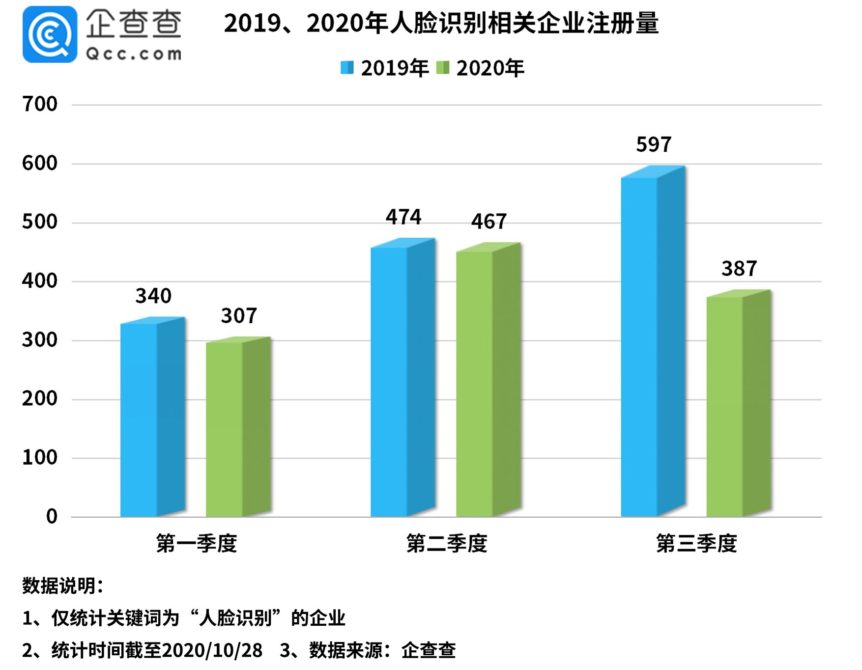 企查查数据显示,今年前三季度,我国共新注册人脸识别相关企业1161家,同比下降17.7%,其中三季度新增387家。