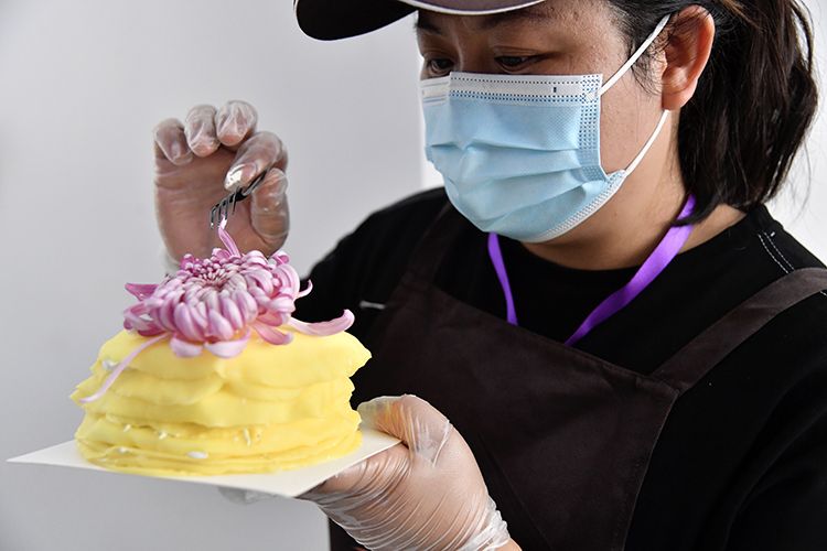 10月30日,平谷区大兴庄镇西柏店村,厨师现场制作菊花焗盐大闸蟹。当日,平谷菊花美食文化季开幕,游客可来此品菊宴、看画展、住民宿、逛市集、感受美丽乡村新变化。