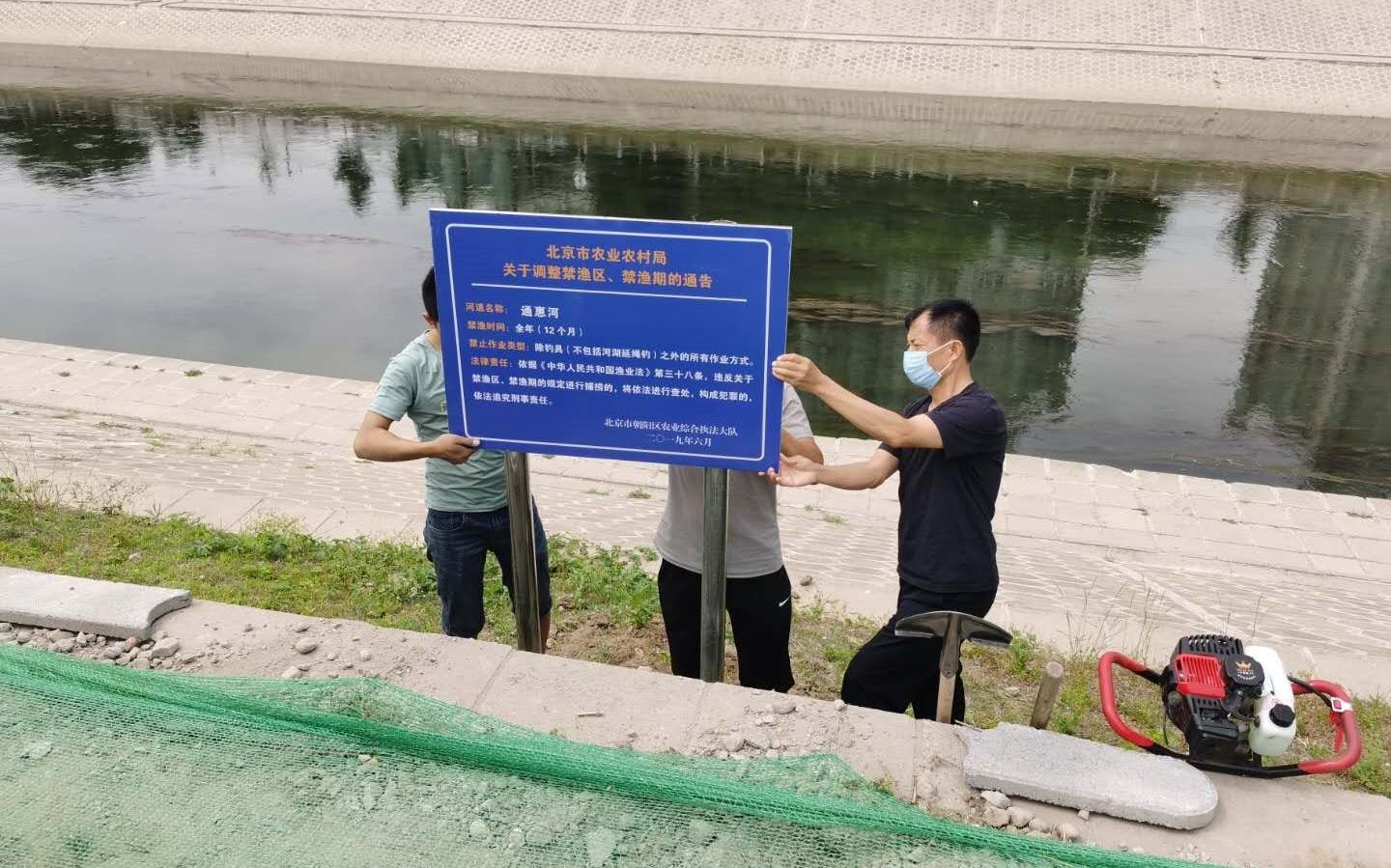 朝阳区安装渔业法律法规宣传警示牌。北京市农业农村局供图