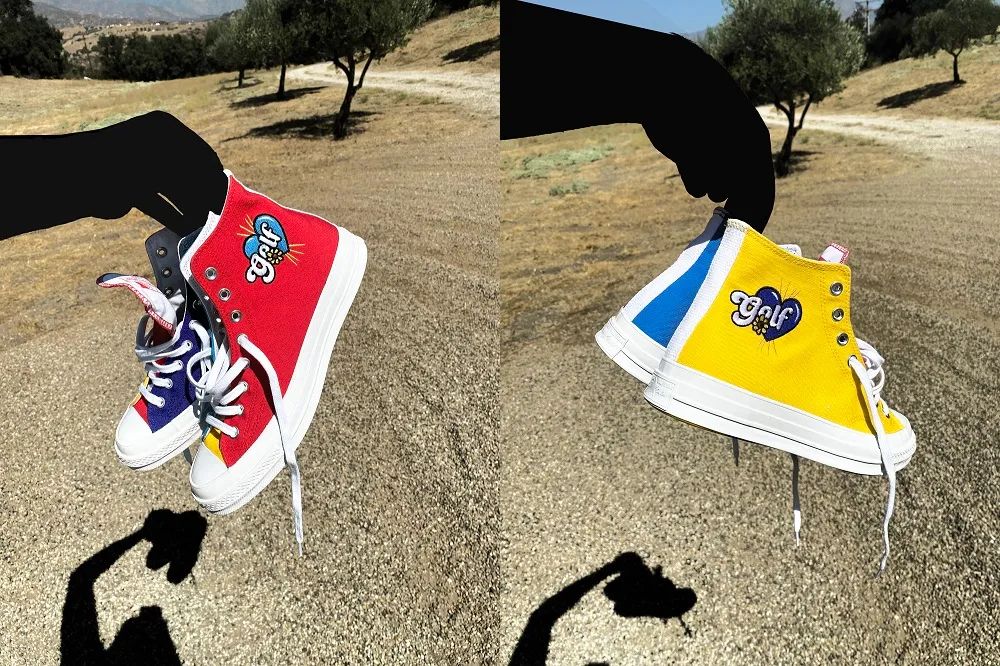 美国说唱歌手Tyler将个人服装品牌GOLF WANG的天马行空精神延续到经典帆布上,与Converse合作推出联名产品。Converse x GOLF WANG以“赛车”主题的棒球夹克作为设计灵感,将撞色的红黄蓝三原色拼接呈现在鞋面上,搭配可爱古怪的设计图案,延续GOLF WANG的搞怪幻想风格。